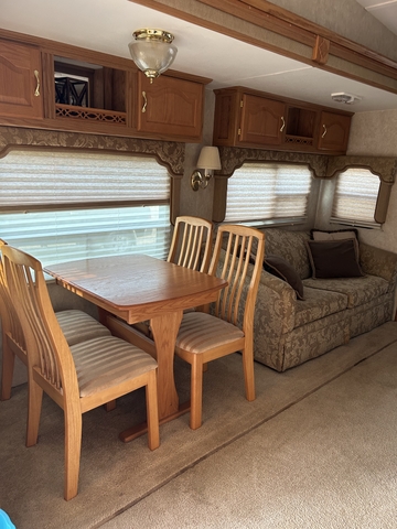 Very nice 2006 Hitchhiker for sale. 3 slides, lots of inside storage and underneath storage. queen bed with storage underneath, closet and 6 dresser drawers with storage up above as well. sofa that makes into a bed. Table with 12 inch leaf for extra space 2 leather recliners, desk for your computer, 2 new batteries, 3 burner stove with oven and microwave, bathroom stool has its own room Closet with washer dryer hook ups Nice pantry as you walk in and place for your trash can. The aweing is in good shape