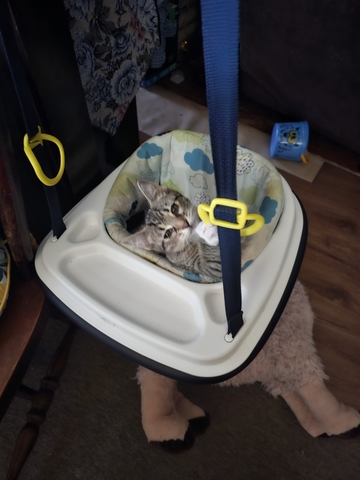 2 wonderful kitties looking for a home! These were fosters that were hands raised by me. They are great with other cats, dogs, and young children! I have a 1 year old and a 2 year old and they can play and be around these two with no issues! My 2 year old can carry them around and they love it. They are both about 16 weeks old now. They had their first round of shots, but no more than that. They are flea free, and dewormed several times. They are not fixed yet. I usually do this before rehoming, but I dont have the funds this year unfortunately. I didn't plan on taking them on, but I was one of the only options left. They could go together, or seperate. I know they both would prefer to have a friend of some sort- Kevin doesn't care what, but Lala would prefer a cat friend, or smaller dog. They both LOVE to play. They are pretty bonded to each other as well- THEY ARE NOT SIBLINGS- I just happened to get them about a week apart and they are the same age.
