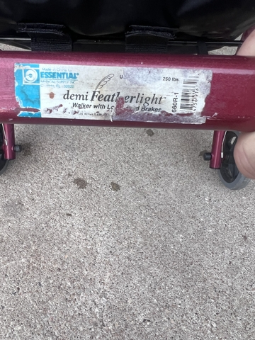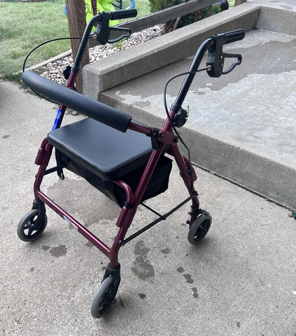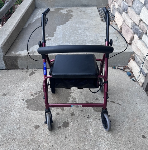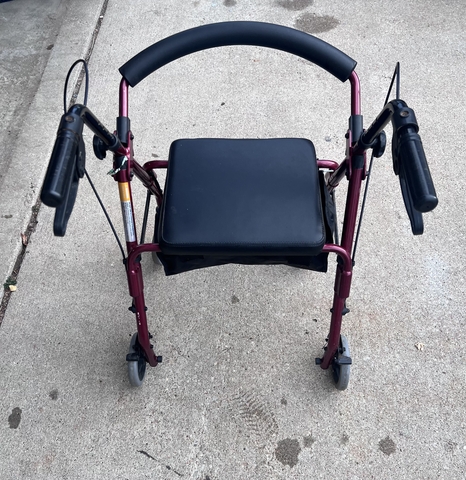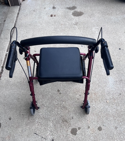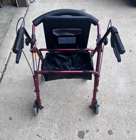 Have a Nice Featherlight Rollator Walker with chair with handbrakes, bottom storage and back support bar, Model 660R, weight capacity of 250 pounds.
