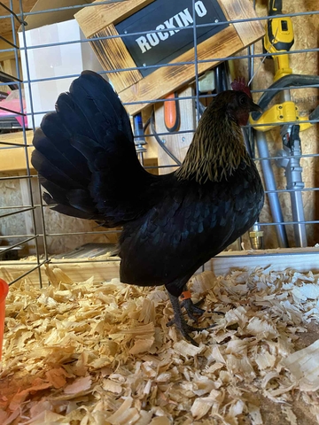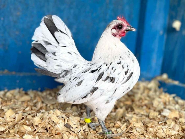 Lemon Blue Sport Old English bantam hen and Brown Red hen. Garden City, Ks. Text 620-640-6970.