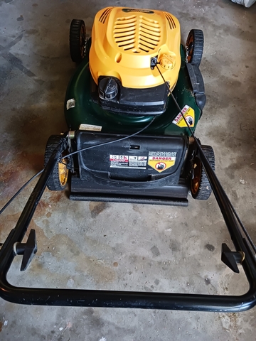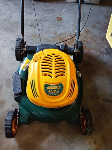 For Sale: Yardman 6.5 Gas Mower. It comes with bagger and a side shut. The wheel axles need some work.