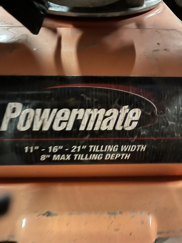 I have a Powermate 150 cc, 8 inch tilling depth, & 11-16-21 width.