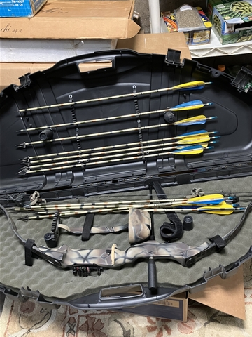 Grizzly bow case and accessories near as I can tell it is 65 lb tried to take pics and didn't have enough hands