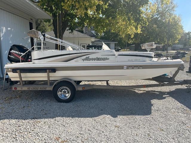 2005 Hurricane deck boat (19'), 115HP Mercury Optimax (2-stroke), Bimini Top, Minn Kota Terrova Trolling Motor, 2 Garmin Fish Finders w/GPS, on-board charger, livewell. Runs great, just looking to upgrade. Call or text 785-747-8213.