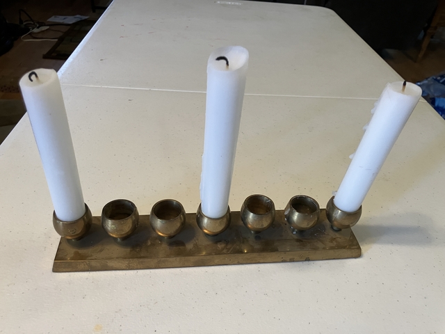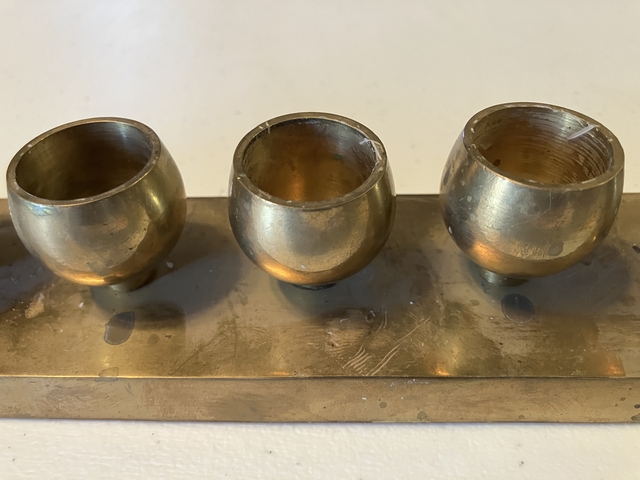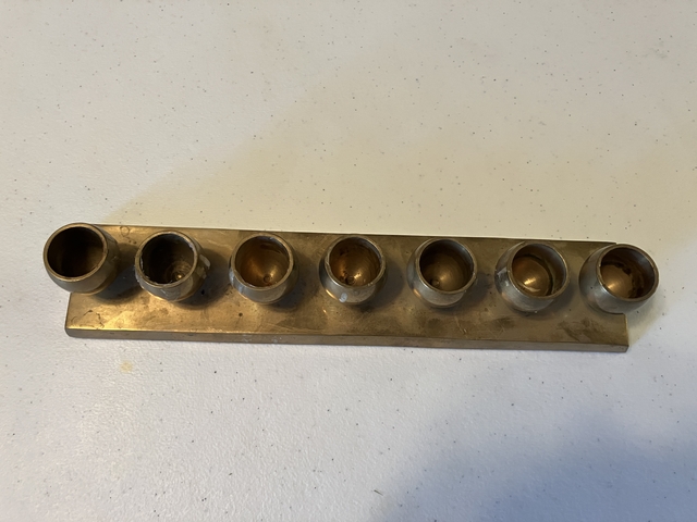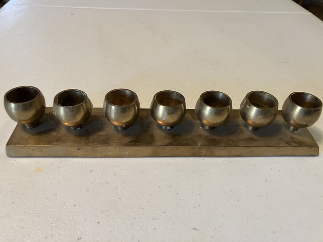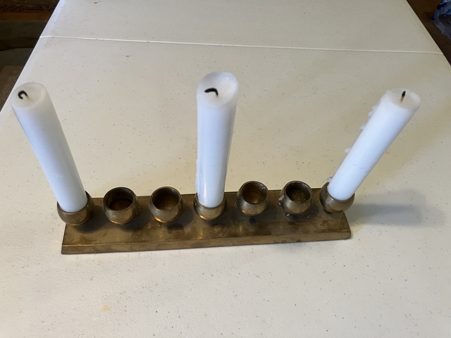 A brass candle holder for 7 candles. Made in India.