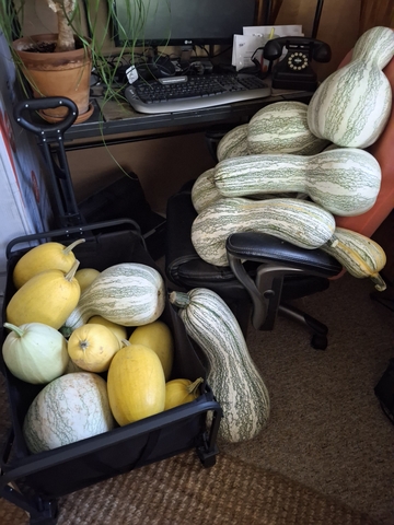 Spaghetti squash, crockneck squash are amazing, winter squash, cucumbers, basil, rosemary and dill, lots of pumpkins, all colors.Message me for info, you can pick up in morland ? I can't deliver.I have many, many.