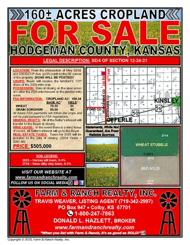 160± ACRES CROPLAND - HODGEMAN COUNTY, KS