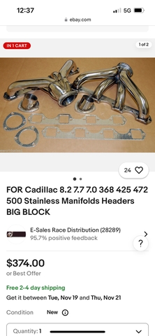 Brand new Cadillac 8.2 7.7 7.0 368 425, 472, 500 Stainless Manifolds Headers