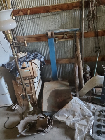 An older platform scale that is used for weighing almost anything that you can put on or balance on platform
