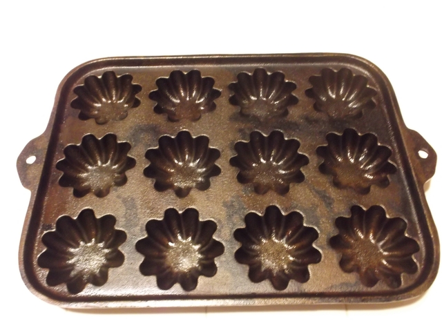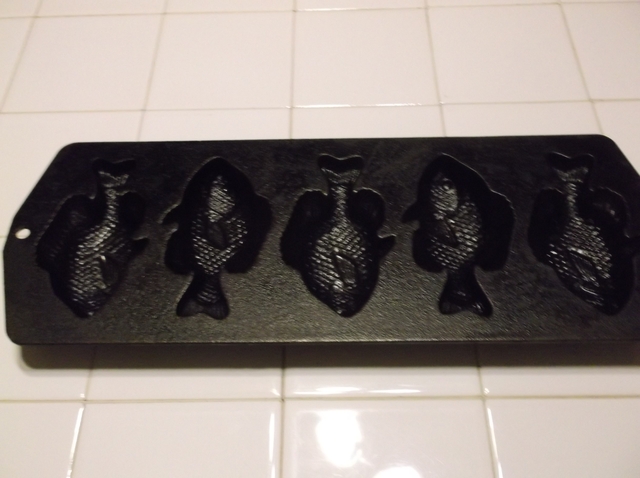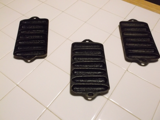 Wagner's 1891 Original 17" Double Griddle, made in the USA; Decorative Biscuit Pan, made in the USA; (3) Small Corn Pone Pans, no markings; Lodge 5PP2 Fish Shape Pan, made in the USA; All in excellent condition & well seasoned, must sell, asking $40.00 for all or best offer.