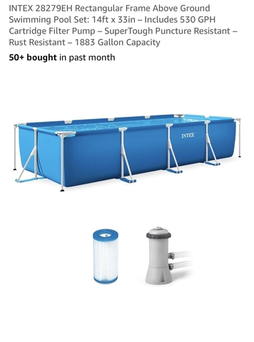 Have an Intex rectangular frame pool set 14ftx7ftx33in deep for sale, used 2 summers stored this summer, liner does not leak but since we live in the country i was worried bout sticker punctures so bought a brand new still in box liner extra for it also have a cover, manual skimmer, clorine container etc that goes with it. Grandkids just out grew it and have other things goin on so need it out of our way in garage. Any questions reply here please! Thank you for looking.