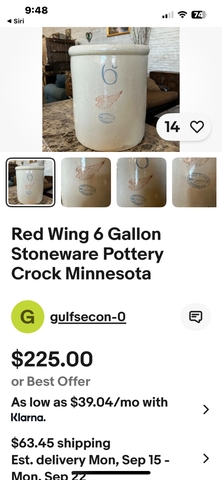 I have a Redwing 6 gallon crock. No cracks . Selling on EBay for $225.00.