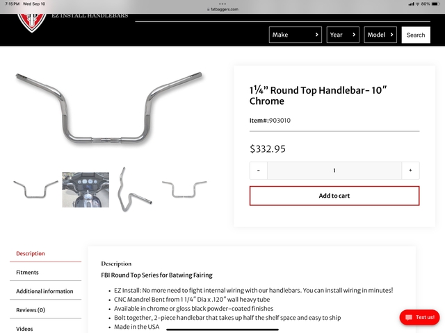 Fits street glide, like new $150 bucks, located in Hays, cash only. Fits 2006-2023 fat baggers # 903010, 10'' bars, also have a set of 12'' fat bagger bars for a streetglide $150 bucks also.