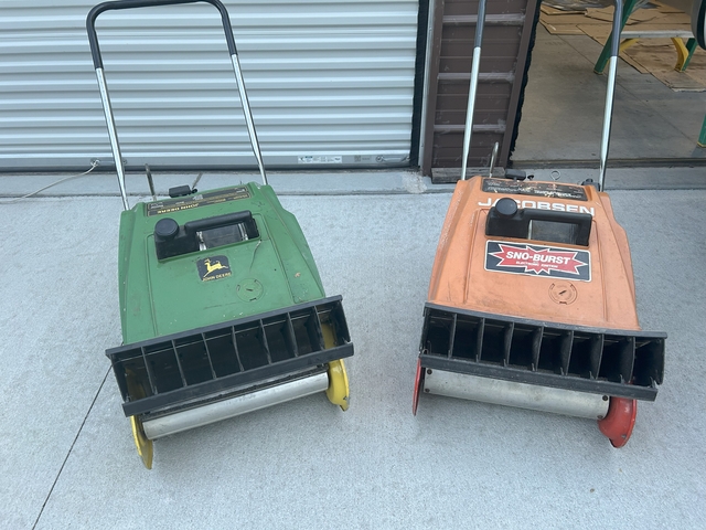 I had bought a few 2 cycle snow blowers that weren;t running a few years ago and finally made 3 good ones out of four machines. I had both of these running good earlier this year and used them but have not run them since March. The Jacobsen has an electric start that works. I have one bigger one now and really don't need more than one. I am motivated to free up some space and want to sell the pair for $30.00