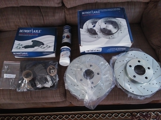 I have like new / Never been used / In the box / From Detroit Axle / Premium Ceramic Disc Front Brake Pads / With Hardware / Drilled Slotted Disc Brake Rotors / Can of Brake Cleaner / Synthetic Dot-3 Brake Fluid. I Purchased This Hardware For A 2016 Ford Focus, That I Had. Just Trying To Get My Money Back. Text Dave @ 785-713-0739
