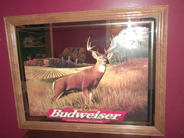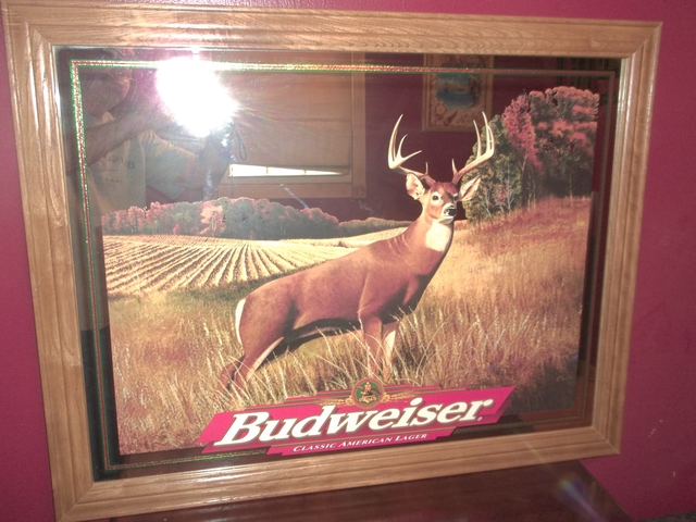 Budweiser Deer Mirror a must for any hunters collection. 36"L x28"H Message me through this ad. Thanks