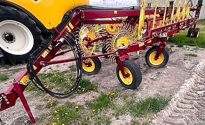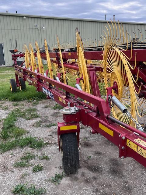 LISTED IS A USED 2021 NEW HOLLAND 1428 DURAVEE WHEEL RAKE. THIS RAKE INCLUDES THE 60" WHEEL KIT , CENTER KICKER WHEEL KIT, REAR TANDEM WHEELS AND REAR HYDRAULIC OPENING KIT. VERY GOOD CONDITION.