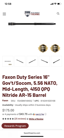 Faxon 556 government profile one and eight twist mid length gas system call or text 6202258754