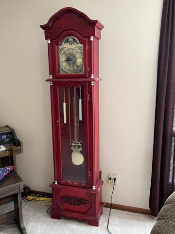 STAND UP REDDISH COLOR WOOD CLOCK, IS NOT HEAVY,