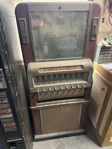 Antique cigarette machine for sale. Measures 62"tall, 29"wide, 11"deep. I do NOT have the keys to open it. Similar machines on eBay go for $4,000-$6,500. Call or preferably text (785)737-6197. I hate to get rid of this but I need the room in my shop.
