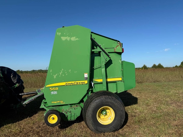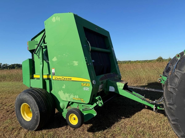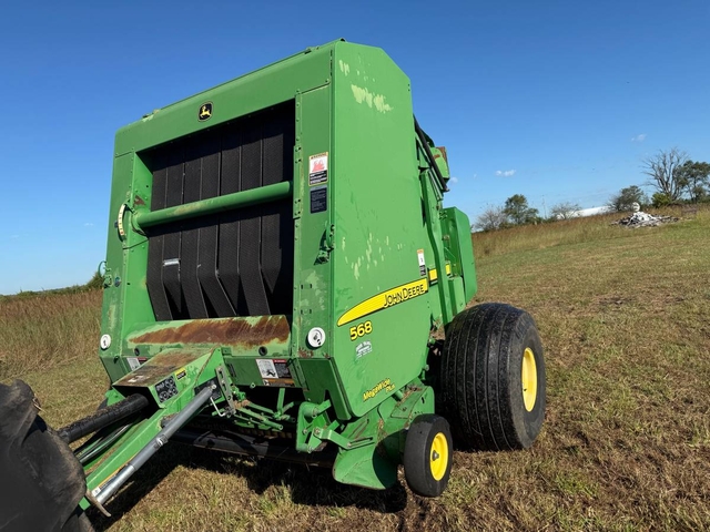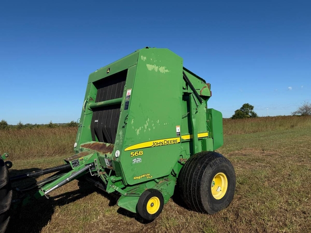 5x6 round baler, small 1,000 PTO, monitor, twine & net wrap with bale kicker. Mega wide plus pickup and hydraulic lift pickup. This is a very good baler with 14,161 bales. We just finished baling a field with this baler and it did a great job. Shipping available anywhere in the United States. Please call us at 620-736-2038 for more information or to come look at it. Also, please visit our website at www.riggstractorcompany.com to view our current inventory.