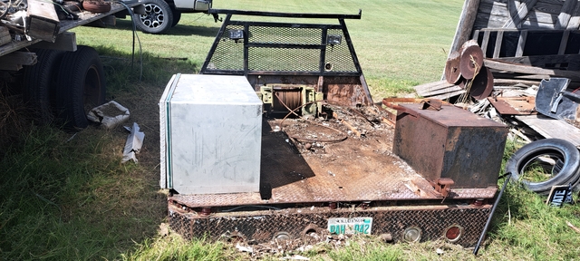 I have for sale a heavy duty steel dually flatbed with a 12K winch from a deuce and a half includes fuel tank and tool boxes and has a ball for a gooseneck. 92 in wide by 92 inches long 48 inches high at headache rack was previously on a Dodge dually but will fit other makes. Very heavy duty very nice flatbed $1,000or best reasonable offer located in Hoxie Kansas. 785-657-7167