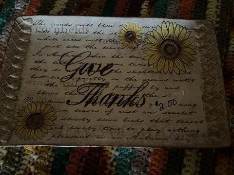 I have a Beautiful Grassland Rd., Sunflower give thanks platter.