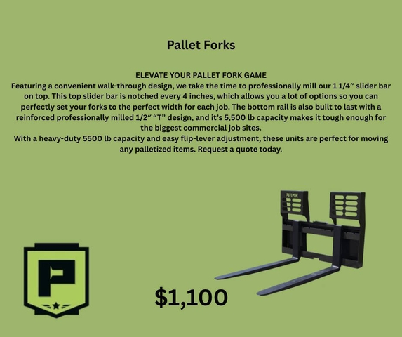 We carry skid loader attachment by Prime Attachments. Over 240 five star reviews and a 2 year warranty. If we don't have it we can get it. Call/text Jared at Rasmussen Auto Sales 308-750-0855. You can also check out rasmussenautosales.com
