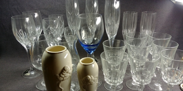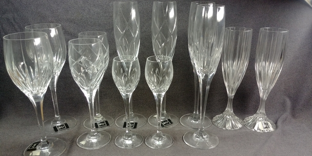 12 Crystal glasses some new old stock with original price tag and labels.