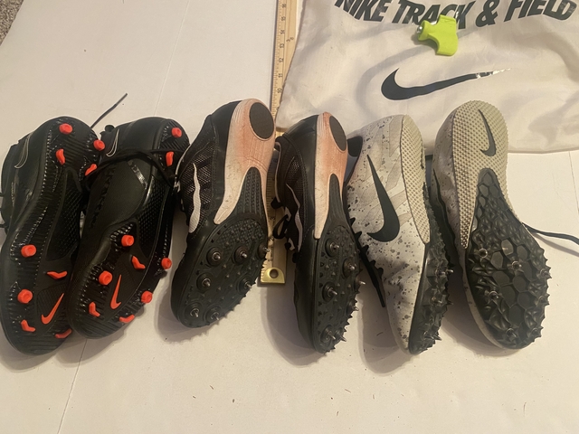 For sale set of 3 NIKE track soccer shoes comes with bag +cleat tools in picture. Call 620 562-7718 or 620 282-2664 NO calls or text after 8pm. We don't answer is it still available, if you see it in the listing is still available.