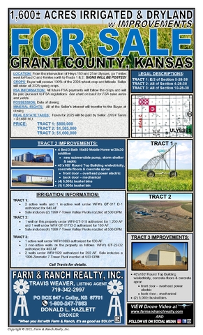 1,600± ACRES IRRIGATED & DRYLAND w/IMPROVEMENTS - GRANT COUNTY, KS