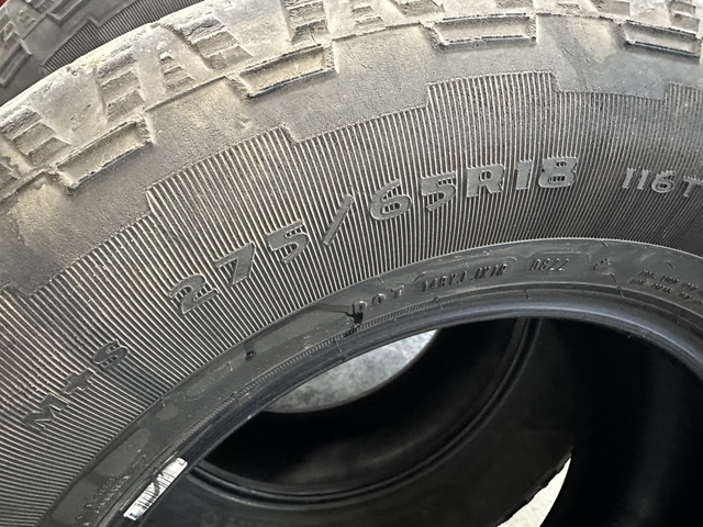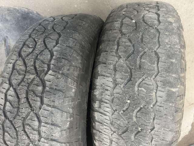 2 tires have 7/32 wear left --- 2 have 8/32 wear left on them --- they are 4 ply tires -- they have 23,687 miles on them when we took off. The owner wanted 10 ply tires so he traded them to me. We want $55.00 per tire carry out price. Or $200,00 for the set.