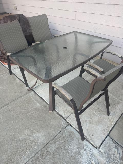 Glass Table Top with 4 chairs. All in good condition.
