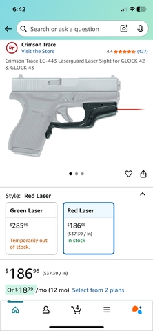 Like new Glock 43 crimson trace laser in red. Also have the holster that fits the Glock with the laser installed on it. Asking $160 OBO. These run $186 before tax for just the laser. Thanks!