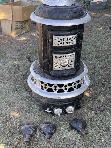 Antique wood stove, very good condition- legs were taken off for storage but have all. 4,, $500 or best offer