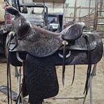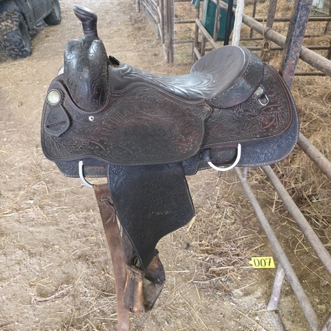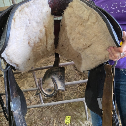 Nice older 15-in Western saddle. Heavy and well-made, good fleece underneath, and the stirp Leathers are in solid condition. Asking $250. 785 293-2004.
