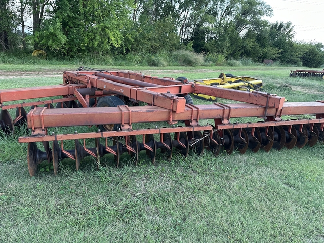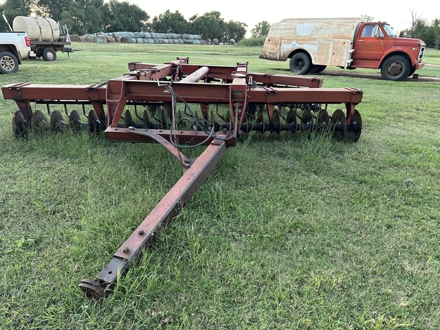 Good little disk for fire breaks or food plots. Blades are getting short but would do the job. Has a couple of tires on it.