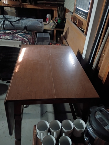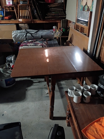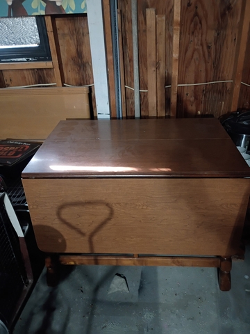 It's dark colored and the table sits 6+ also has a leaf for the middle.