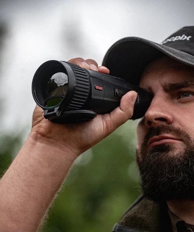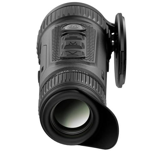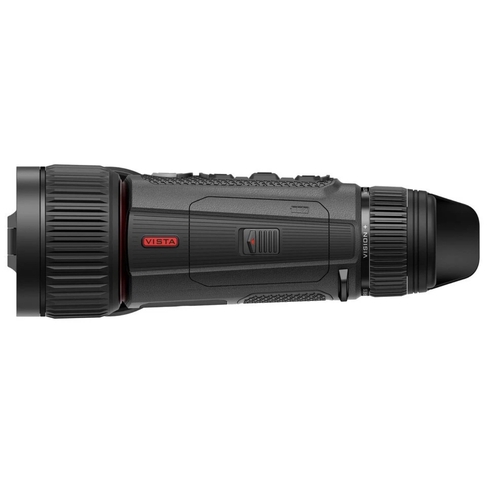 The VISTA handheld thermal monocular features an advanced 50 mm f/0.9 germanium objective lens, offering exceptional clarity and detail. Equipped with a high-resolution 640x512 thermal sensor and an impressive ≤15 mK NETD sensitivity rating, the lightweight and ergonomic monocular delivers crystal-clear images with remarkable detail and contrast, making it perfect for wildlife observation, and security applications. The lens-integrated laser rangefinder enhances its functionality, boasting a maximum detection range of 1,200 yards with a remarkable sensitivity of ±1 yard. Its ergonomic design ensures comfortable handling, while the intuitive interface allows for seamless operation. Perfect for long-range observation, the VISTA includes electronic image stabilization for a smooth, sharp image on the 2560×2560 round AMOLED display. Whether you're scanning for coyotes or conducting night-time surveillance, this is your go-to tool for unparalleled thermal imaging performance.