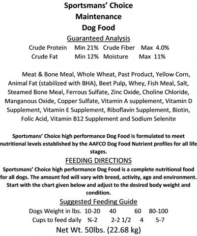 Hunters Blend Sportsmans’ Choice Dog Food is a quality meat based food. Formulated to meet nutritional levels established by the AAFCO Dog Food Nutrient Profiles for all life stages. Sportsmans’ Choice Dog Food, a balanced & complete nutritional food for all dogs. The amount fed will vary with breed, activity, age and environment. Start with the tags given below to determine which protein level best fits your dog’s lifestyle.
