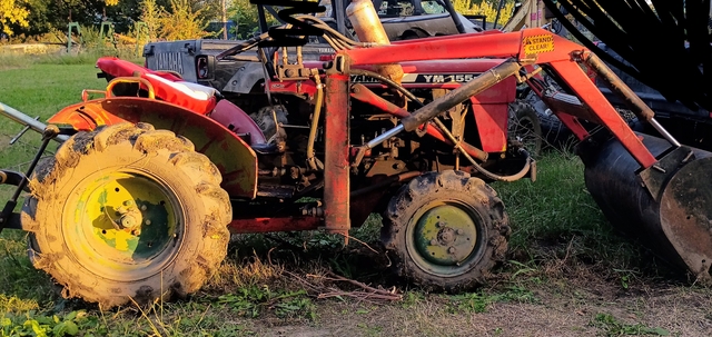 Yanmar Diesel Tractor Removable front end loader, Diesel engine, selectable 4x4, rear differential lock, hi & lo range transmission, two speed rear PTO, turning brakes, 3 point hitch, starts and runs great, tires hold air.