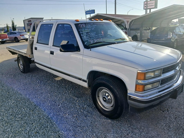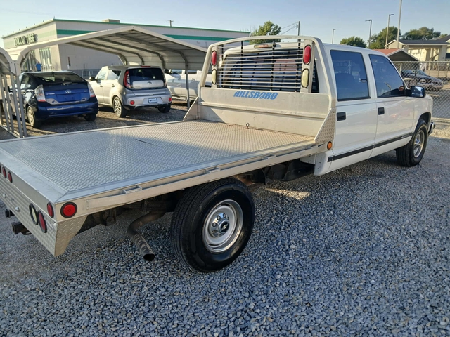 This 1999 Chevy 3500 2WD crew-cab automatic is a hard-to-find truck with a nice Hillsboro aluminum flat bed! It has a 454 Vortec V8 engine, excellent tires, air, tilt and cruise control, and 138,000 miles. Asking $9950. VIN is 1GCGC33JXXF052920.