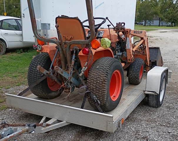 Kubota Diesel Tractor. Not pretty but does her job. Removable front end loader, Diesel engine, selectable 4x4, rear differential lock, hi & lo range transmission, PTO, turning brakes, 3 point hitch, starts and runs great,. Can haul on a utility trailer.