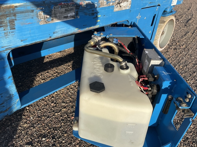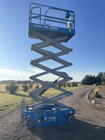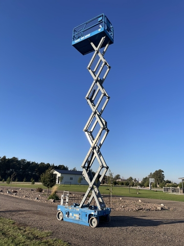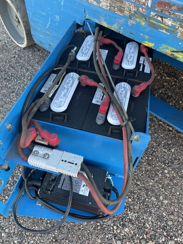 Brand new batteries. 2006 model with 780 hours. Max platform height of 32ft and 46" wide. Solid non-marking tires. On board charger included. Has platform outlet for tools when working up high. Located in Oakley. Message for contact #