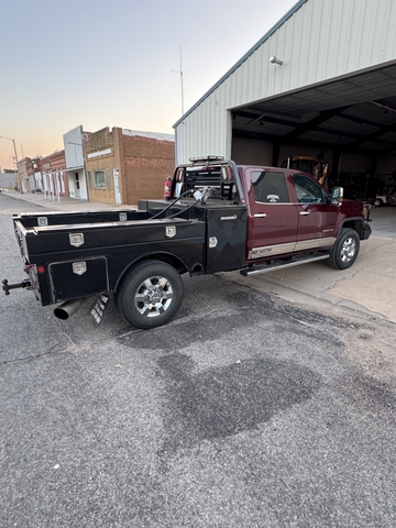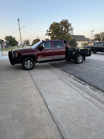 6.6 duramax, Allison transmission, 4x4, crew cab, 203,000 miles, new tires, never been wrecked, fully deleted and new cp3 pump, air bags with air pump and controls in cab, air tank for on board air, hazard lighting, auxiliary fuel pump with external fuel filters , 77 gallon bulk fuel tank with fuel pump, electrical charging post installed to rear of utility bed. Super clean truck.