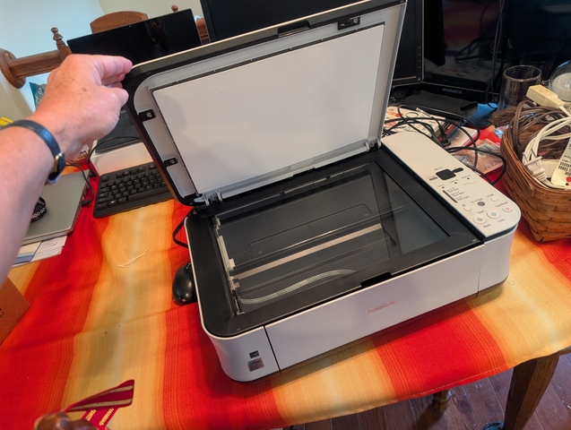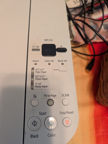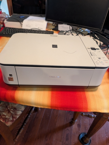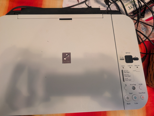 Canon MP250 color printer and scanner.Connects to computer. Works well. An extra black print cartridge included.
