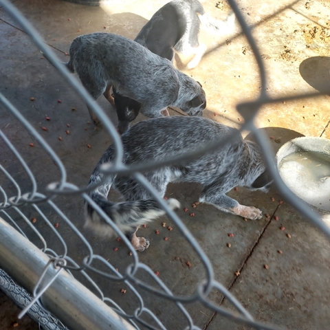 We have 6 blue Heeler mix puppies. Got these puppies for a guy that didn't want them and there mom. Got them around June 1 they were a week old. They had no shots. We can do the shots and health check for 50 otherwise they are free. I just want them to go to a good home. The guy I got them from though they are Border Collie cross. The 2 by there self I was going to keep, I don't have time with my health to train them right the black one is a female.