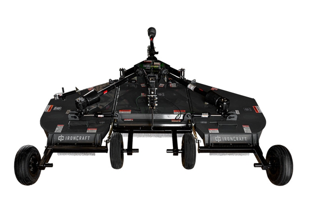 If you are looking for a Flex-Wing Rotary Cutter for your compact tractor, the IronCraft 2512 is the choice for you. With its smooth top deck and spring suspension, this flex-wing is designed to cut grass, weeds, and light brush up to 2” in material while only requiring a minimum PTO horsepower of 35 and one hydraulic outlet. With five different color choices you are able to match your cutter to your tractor.