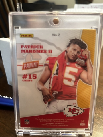 2017 Patrick Mahomes rookie 20/25. This is a very unique piece. Large swatch of the towel he used. Dont see this very often.