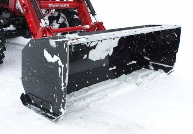 If you want to avoid making windrows, a Mahindra skid-steer snow push is your best bet to contain, push and stack snow. What's more, its commercial-duty enclosed design has no moving parts that can break or malfunction. It's quicker at clearing snow in a parking lot than its snow plow cousin, and is great for moving other materials, too, including manure and food in feedlots. Snow pushes can be found working around farms, parking lots, city and side streets, and other venues that operate many skid-steer attachments